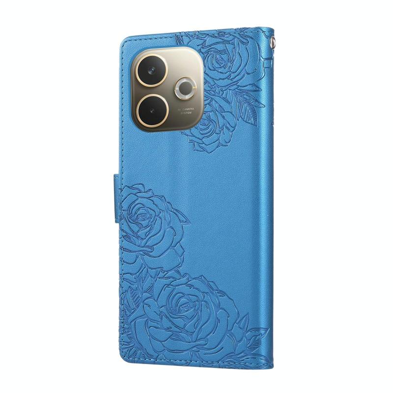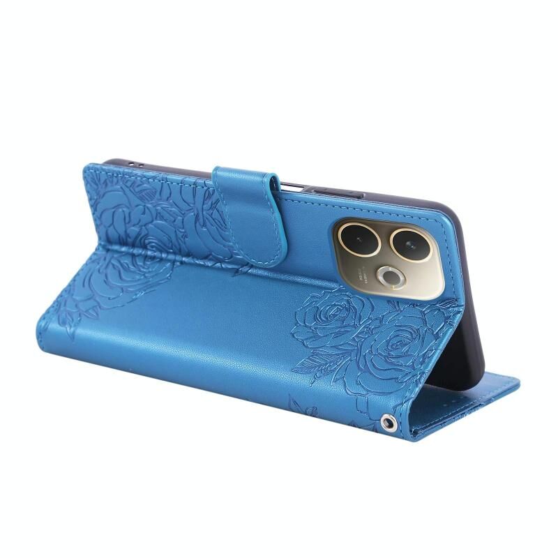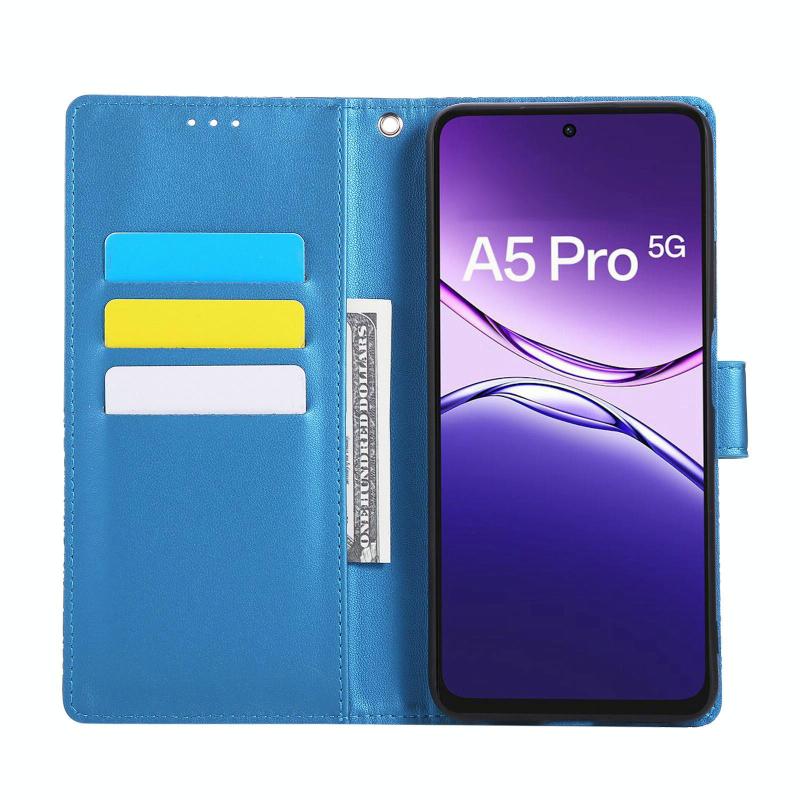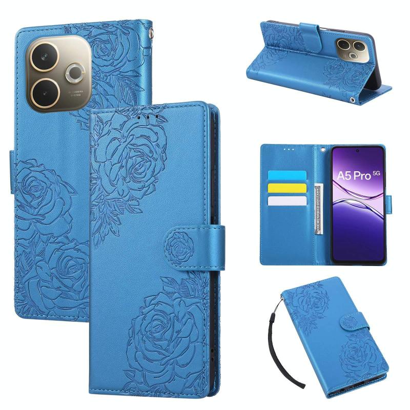 For OPPO A5 Pro 5G Global Rose Flower Embossed 3-Card Slots Leather Phone Case(Blue)
