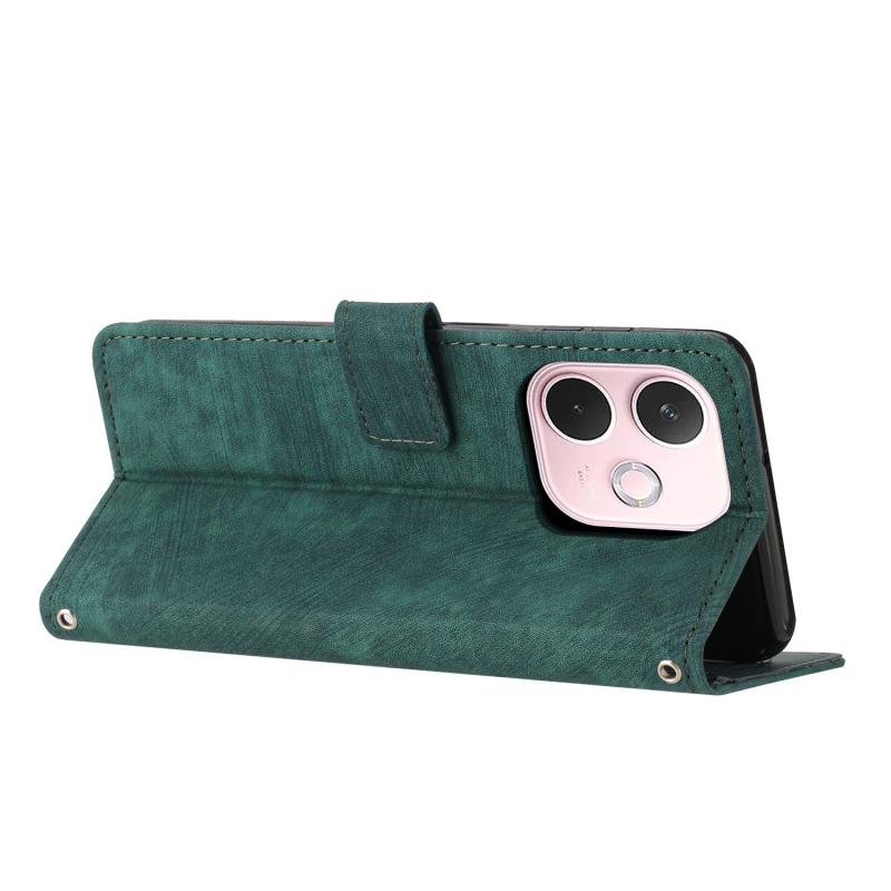 For OPPO A5 Pro 5G Global Skin Feel Stripe Pattern Leather Phone Case with Long Lanyard(Green)