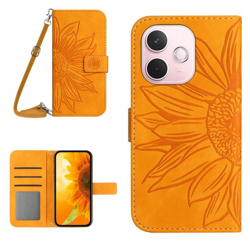 For OPPO A5 Pro 5G Global Skin Feel Sun Flower Embossed Flip Leather Phone Case with Lanyard(Yellow)