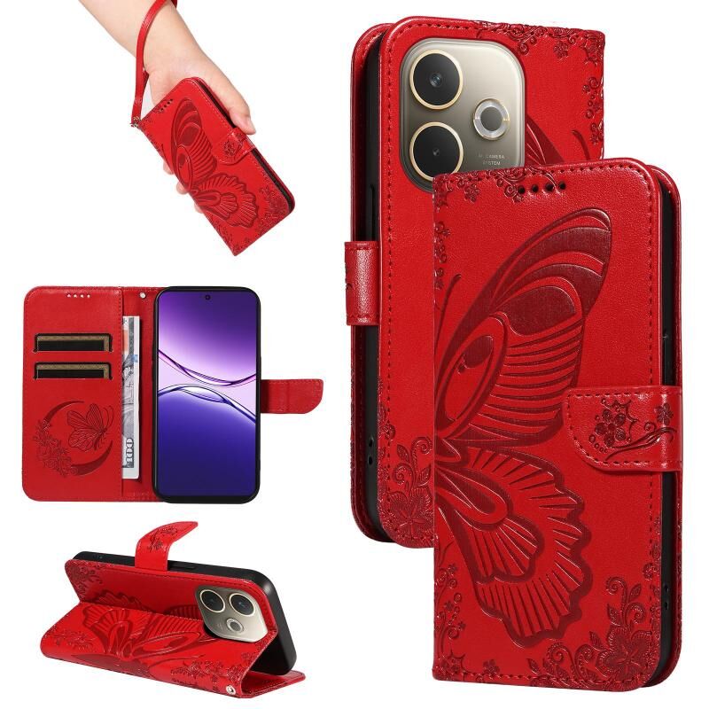 Θήκη τηλεφώνου από δέρμα με ανάγλυφο σχέδιο πεταλούδας Swallowtail για OPPO A5 Pro 5G (Κόκκινο)