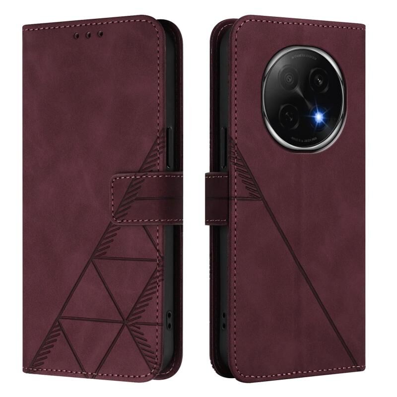 Θήκη τηλεφώνου από δέρμα με ανάγλυφο 3D, τύπου flip, για OPPO A5 Pro Κίνας, με λουρί (Κρασοκόκκινο)