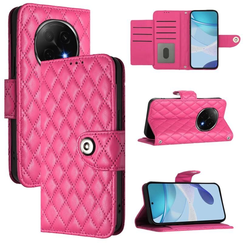 Θήκη τηλεφώνου από δέρμα με ανάγλυφη υφή ρόμβου για OPPO A5 Pro Κίνας, με λουρί (Ροζέ κόκκινο)