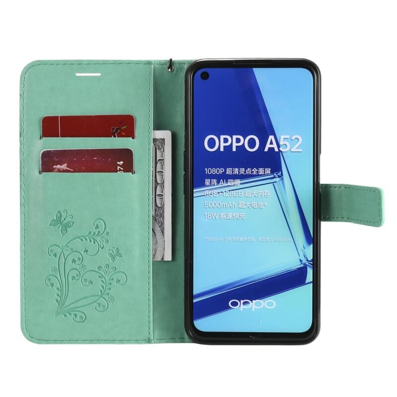 Θήκη δέρματος οριζόντιας αναδίπλωσης με ανάγλυφο σχέδιο 3D πεταλούδων για OPPO A52 / A72 / A92 με βάση στήριξης & υποδοχή κάρτας & πορτοφόλι & κορδόνι (πράσινο)
