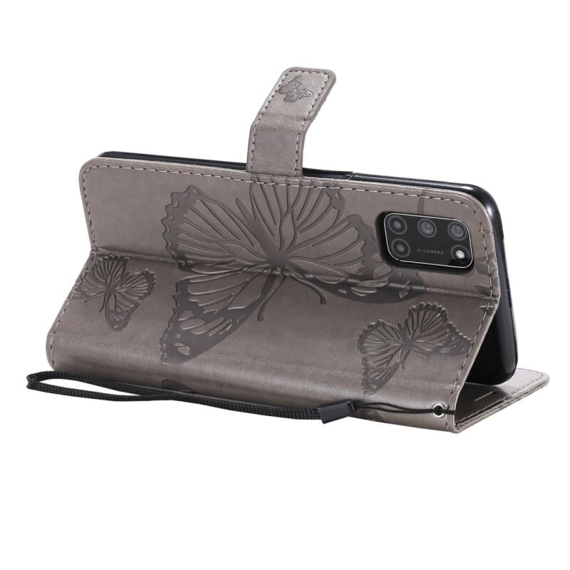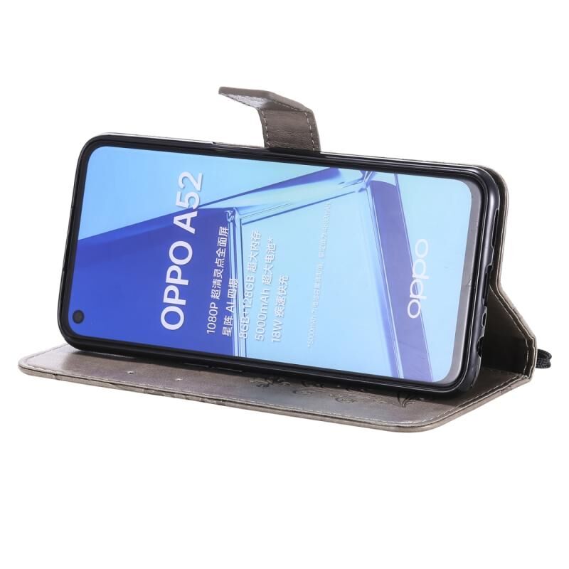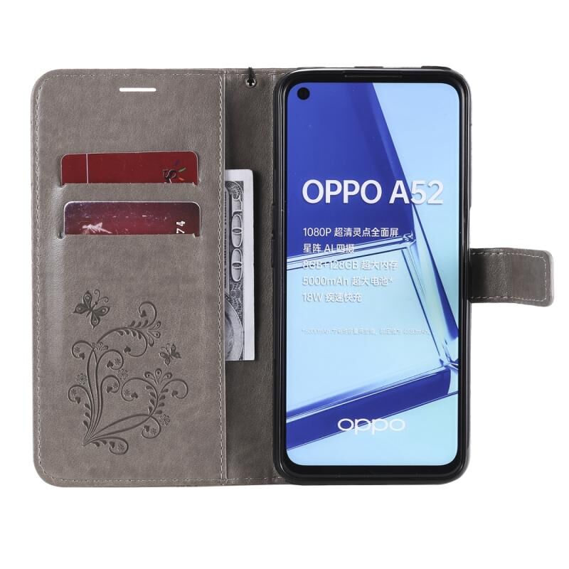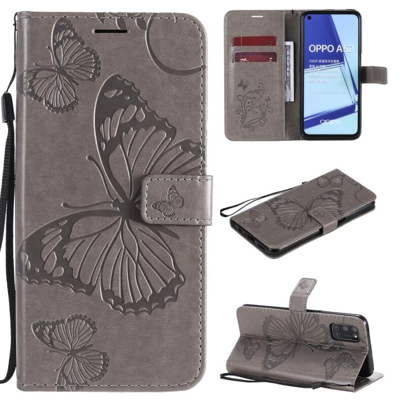 Θήκη δέρματος οριζόντιας αναδίπλωσης με ανάγλυφο σχέδιο 3D πεταλούδων για OPPO A52 / A72 / A92 με βάση στήριξης & υποδοχή κάρτας & πορτοφόλι & κορδόνι (Γκρι)