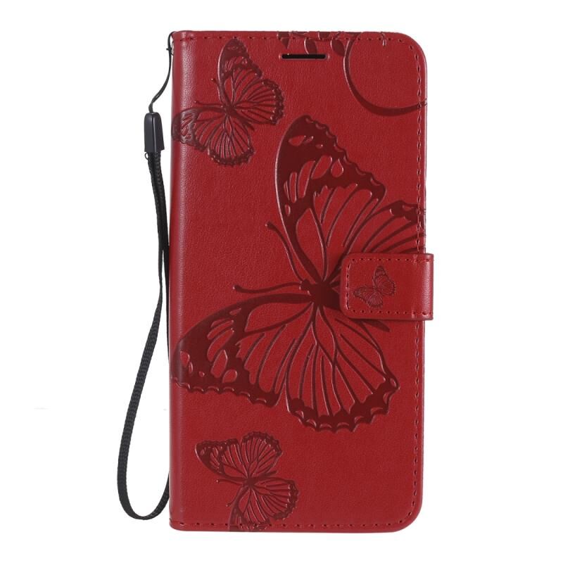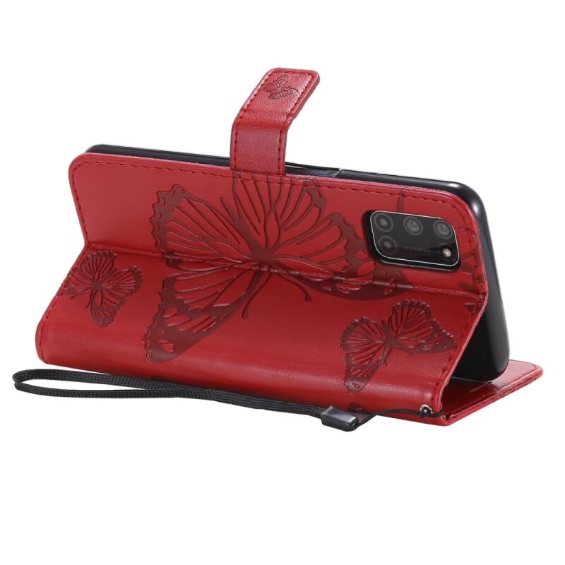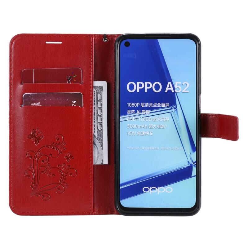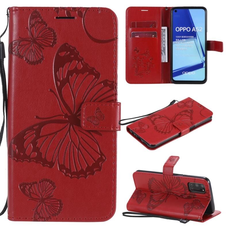Θήκη δέρματος οριζόντιας αναδίπλωσης με ανάγλυφο σχέδιο 3D πεταλούδων για OPPO A52 / A72 / A92 με βάση στήριξης & υποδοχή κάρτας & πορτοφόλι & κορδόνι (Κόκκινο)