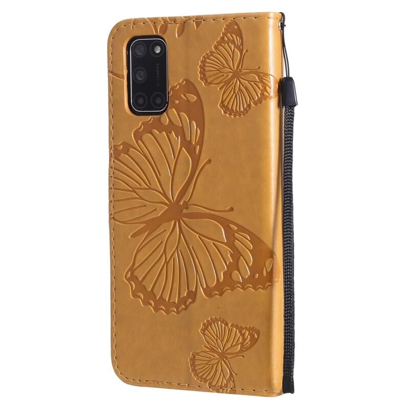 Θήκη δέρματος οριζόντιας αναδίπλωσης με ανάγλυφο σχέδιο 3D πεταλούδων για OPPO A52 / A72 / A92 με βάση στήριξης & υποδοχή κάρτας & πορτοφόλι & κορδόνι (Κίτρινο)