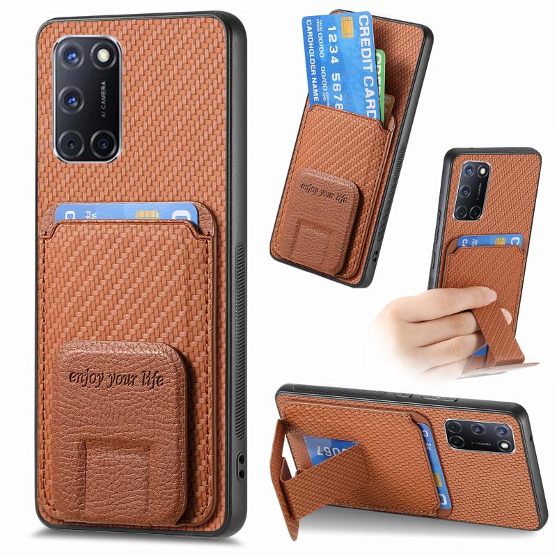 Θήκη για OPPO A52 / A72/ A92 από ανθρακονήματα με κάρτες & βάση στήριξης (Καφέ)