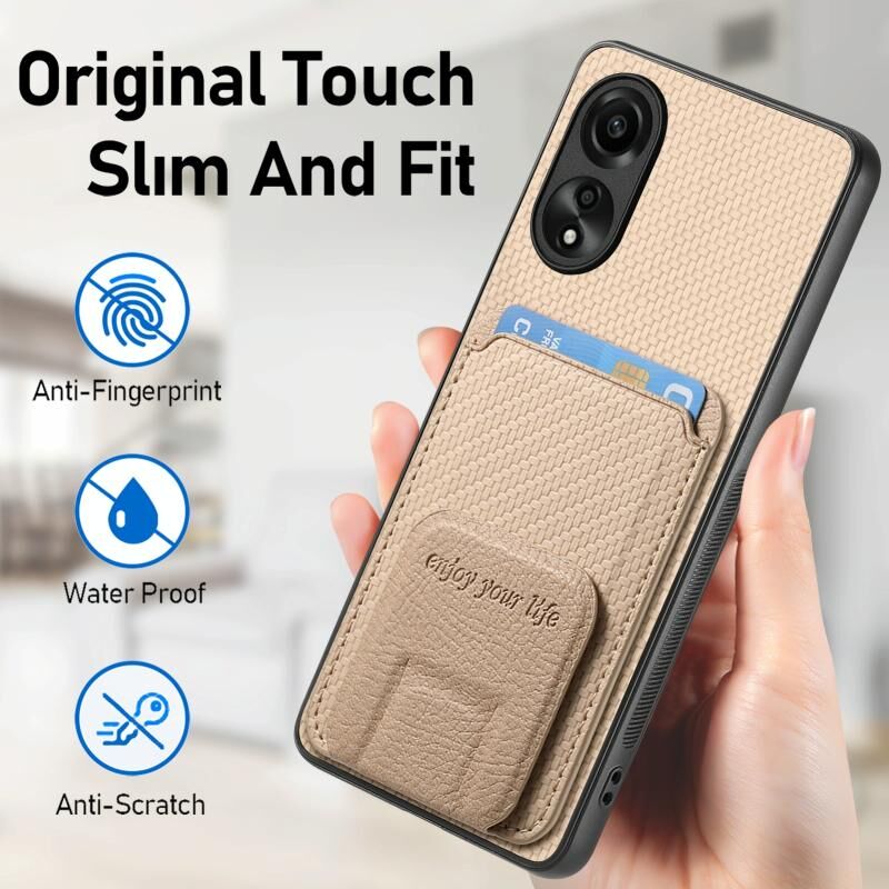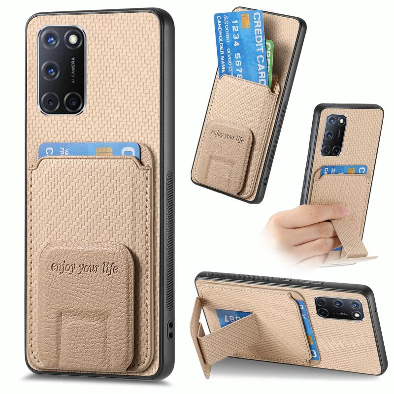 Θήκη για OPPO A52 / A72/ A92 από ανθρακονήματα με κάρτες & βάση στήριξης (Χακί)