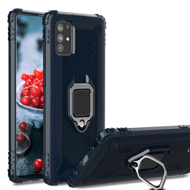Για OPPO A52 / A72 / A92 Carbon Fiber Προστατευτική θήκη με 360 μοίρες περιστρεφόμενο δαχτυλίδι κάτοχος (Μπλε)