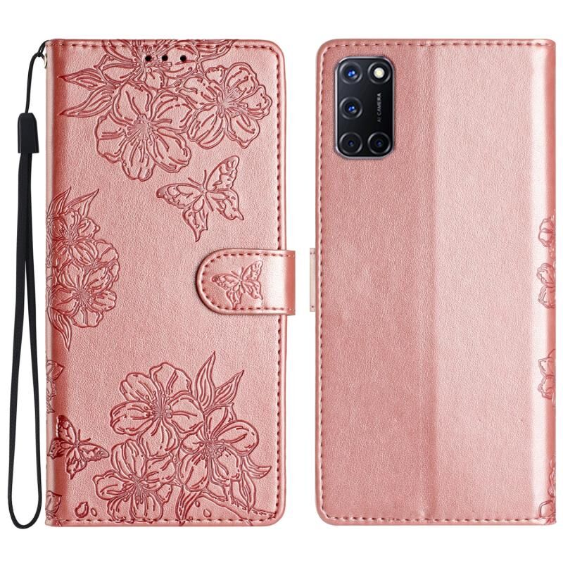 Θήκη τηλεφώνου OPPO A52 / A72 / A92 Cherry Blossom Butterfly Skin Feel Embossed PU (Κόκκινη)