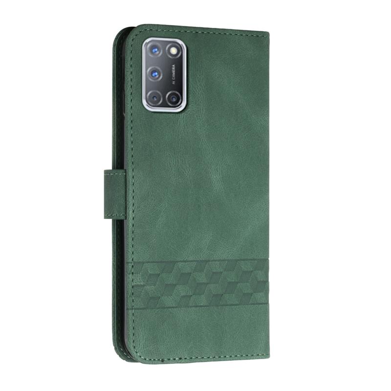 For OPPO A52 / A72 / A92 Cubic Skin Feel Flip Leather Phone Case(Dark Green)
