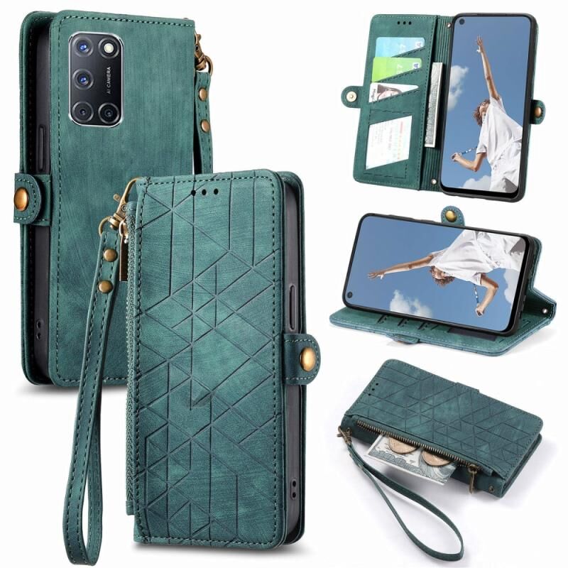 Για OPPO A52/A72/A92 γεωμετρική φερμουάρ πορτοφόλι πλευρά πόρπη δερμάτινη θήκη τηλεφώνου (πράσινο)
