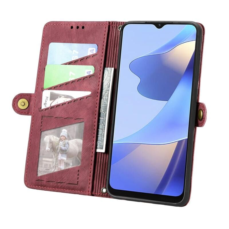 Για OPPO A52/A72/A92 γεωμετρική φερμουάρ πορτοφόλι πλευρά πόρπη δερμάτινη θήκη τηλεφώνου (Κόκκινο)