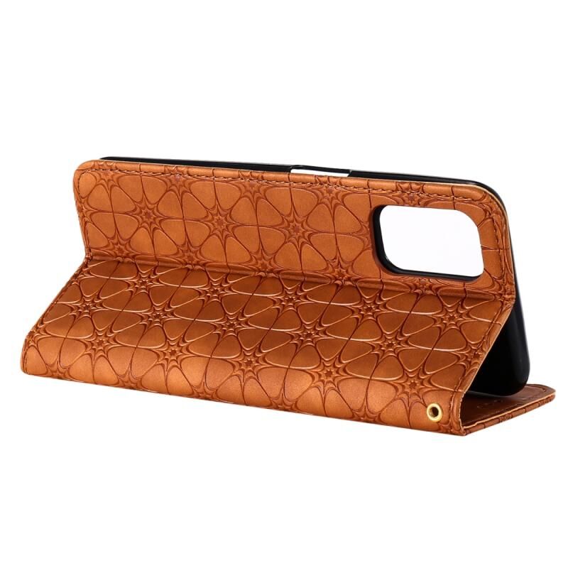 Θήκη δέρματος με μαγνητικό κλείσιμο, οριζόντια, με ανάγλυφο σχέδιο τυχερών λουλουδιών για OPPO A52 / A72 / A92, με βάση στήριξης & θήκες για κάρτες (Καφέ)