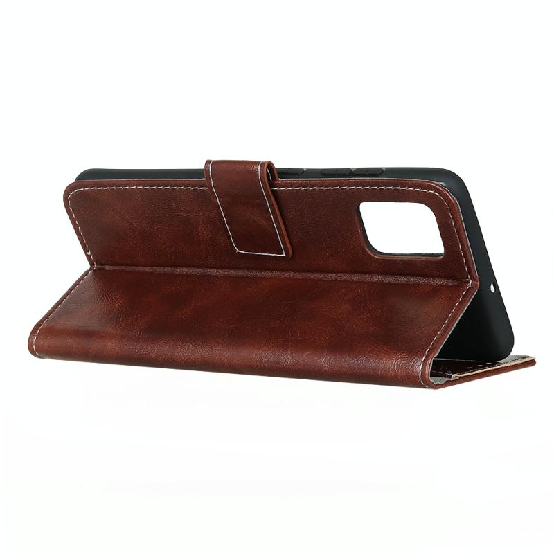 Θήκη δέρματος οριζόντιας αναδίπλωσης για OPPO A52/A72/A92 με υφή Retro Crazy Horse, με βάση στήριξης & υποδοχές καρτών & κορνίζα φωτογραφιών & πορτοφόλι (Καφέ)