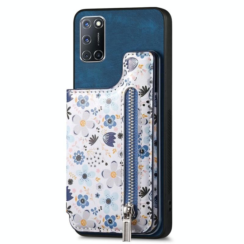 Για OPPO A52/A72/A92 Ρετρό ζωγραφισμένο φερμουάρ πορτοφόλι πίσω τηλέφωνο υπόθεση (μπλε)