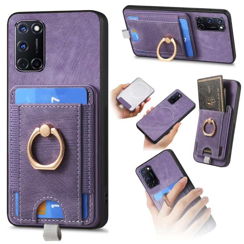 Για OPPO A52/A72/A92 Ρετρό Splitable μαγνητική κάρτα τσάντα δερμάτινη θήκη τηλεφώνου (μωβ)