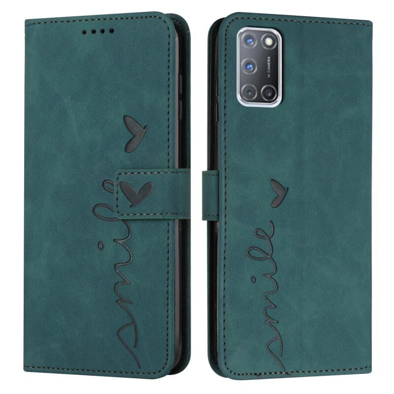 Για OPPO A52/A72/A92 δέρμα αισθάνονται καρδιά μοτίβο δερμάτινη θήκη τηλεφώνου (πράσινο)