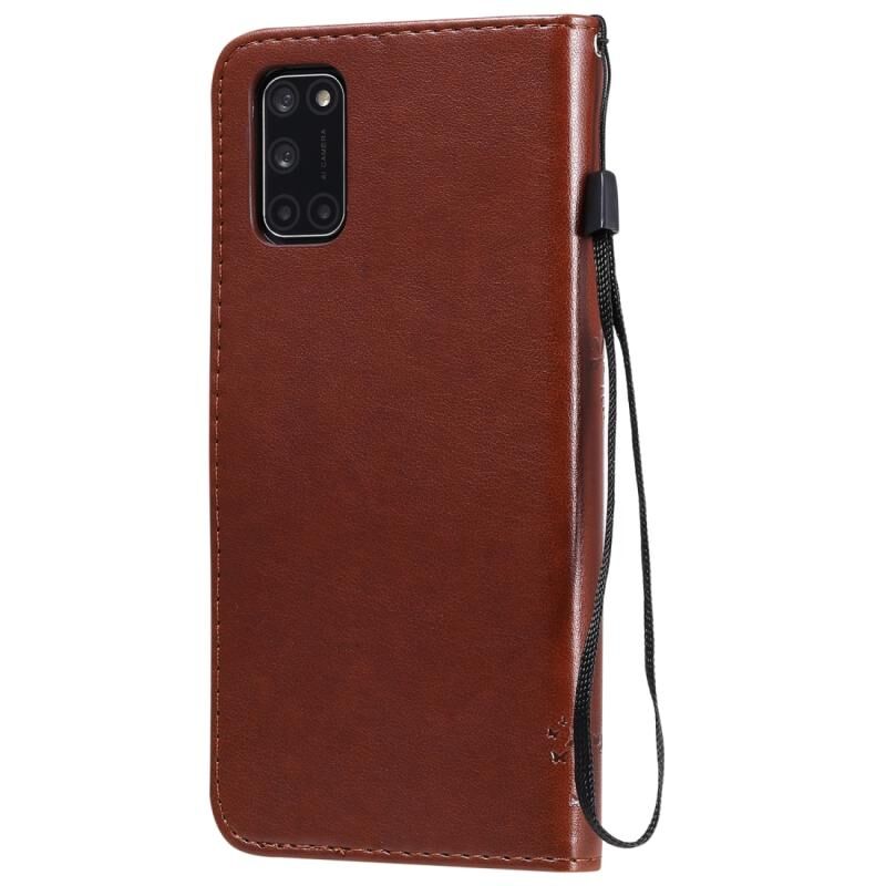 Θήκη δέρματος οριζόντιας αναδίπλωσης με ανάγλυφο σχέδιο δέντρου & γάτας για Oppo A52 / A72 / A92 με βάση στήριξης & υποδοχές καρτών & πορτοφόλι & κορδόνι (Καφέ)