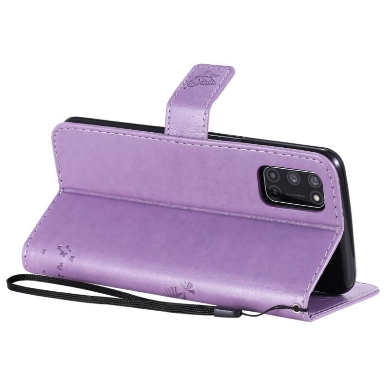 Θήκη δέρματος οριζόντιας αναδίπλωσης με ανάγλυφο σχέδιο δέντρου & γάτας για Oppo A52 / A72 / A92 με βάση στήριξης & υποδοχές καρτών & πορτοφόλι & κορδόνι (ανοιχτό μωβ)