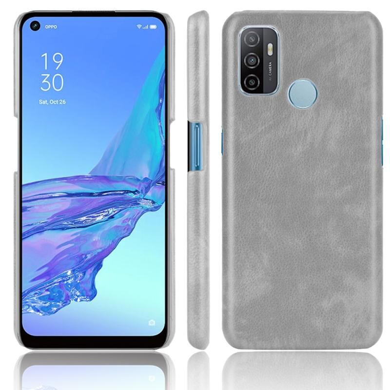 Για OPPO A53 (2020) / A32 (2020) Αδιάβροχη θήκη PC + PU με υφή Litchi (γκρι)