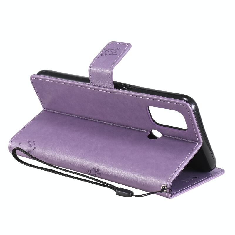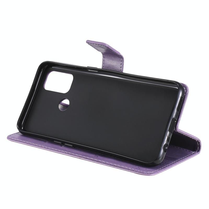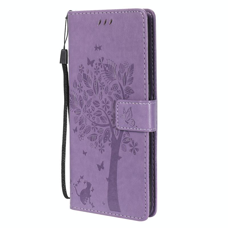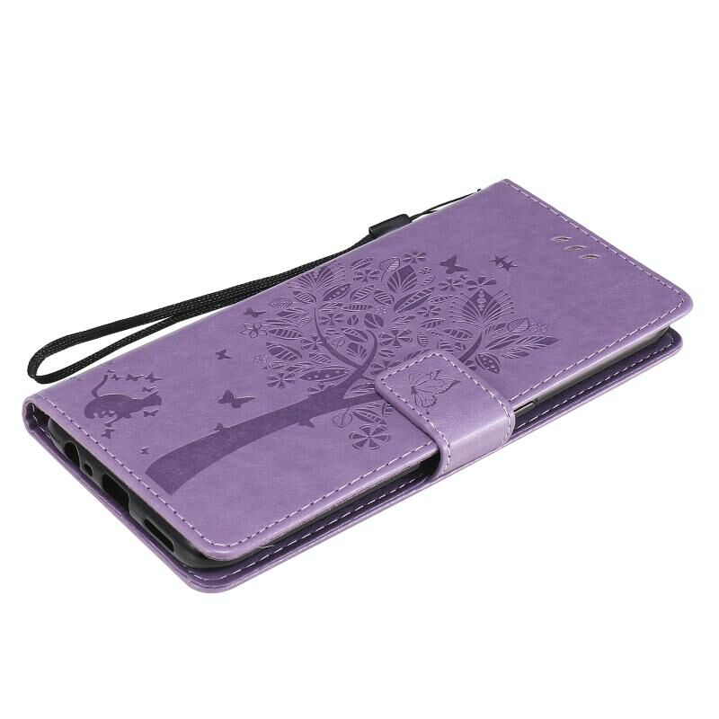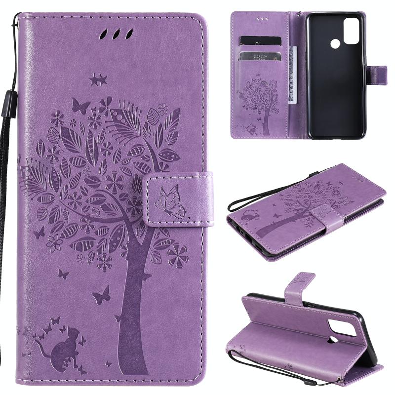 Θήκη για OPPO A53(2020) / A32 με σχέδιο Δέντρου & Γάτας, εκτυπωμένη με θερμοτύπηση, οριζόντια, από δερματίνη PU με βάση στήριξης & θήκες για κάρτες & πορτοφόλι & κορδόνι (Χρυσό)