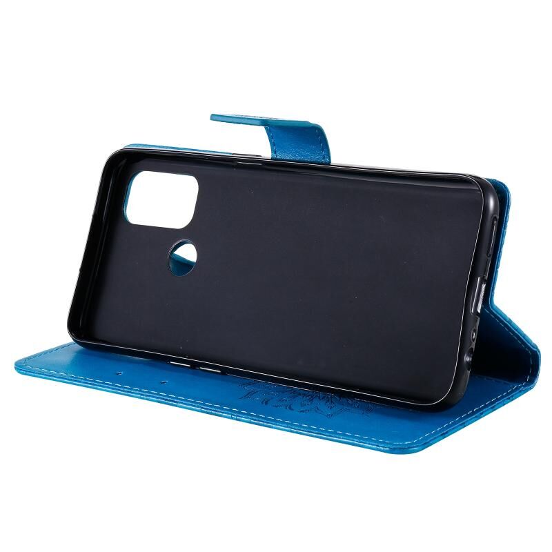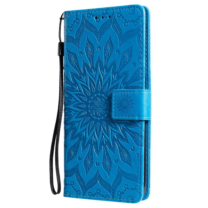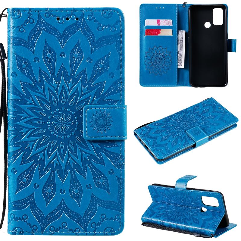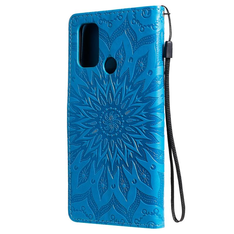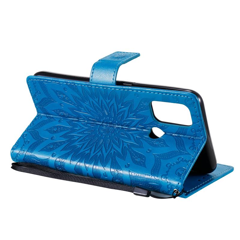 Θήκη δέρματος οριζόντιας αναδίπλωσης με ανάγλυφο σχέδιο ήλιου για OPPO A53(2020) / A33(2020) / A53s / A32 με υποδοχή κάρτας & βάση & πορτοφόλι & κορδόνι (Καφέ)