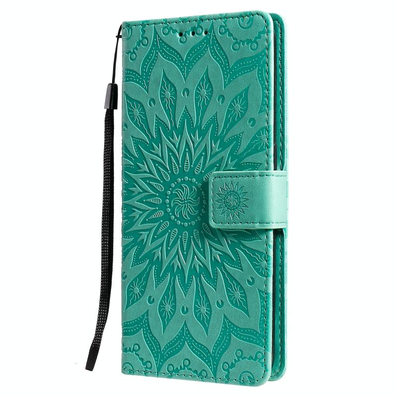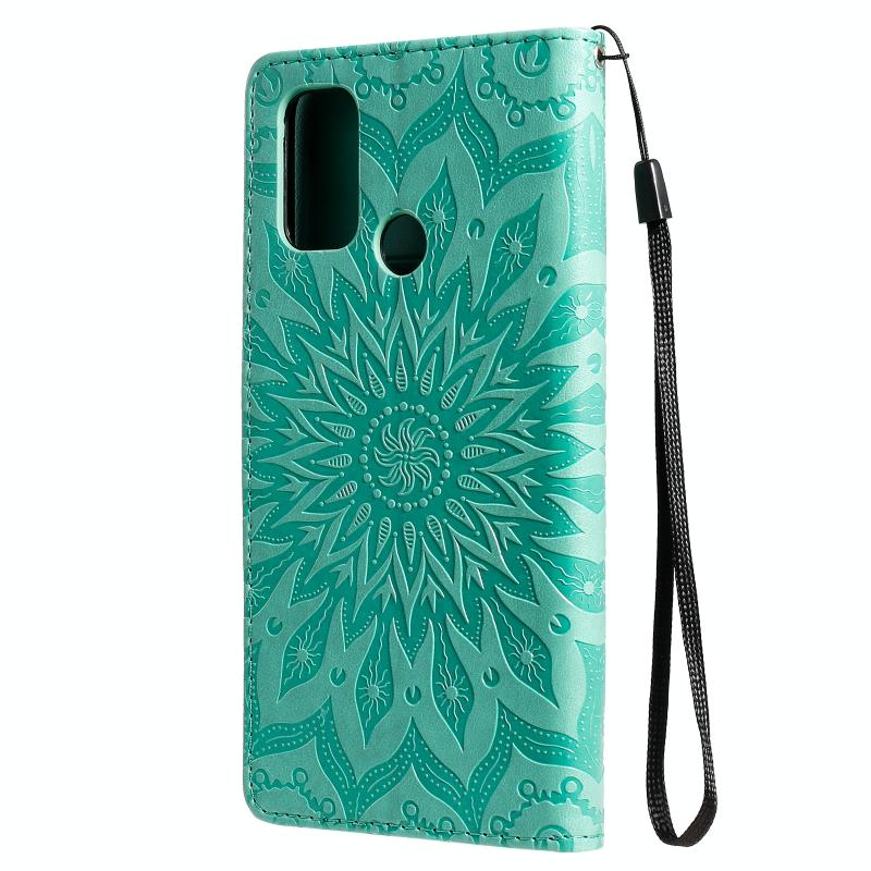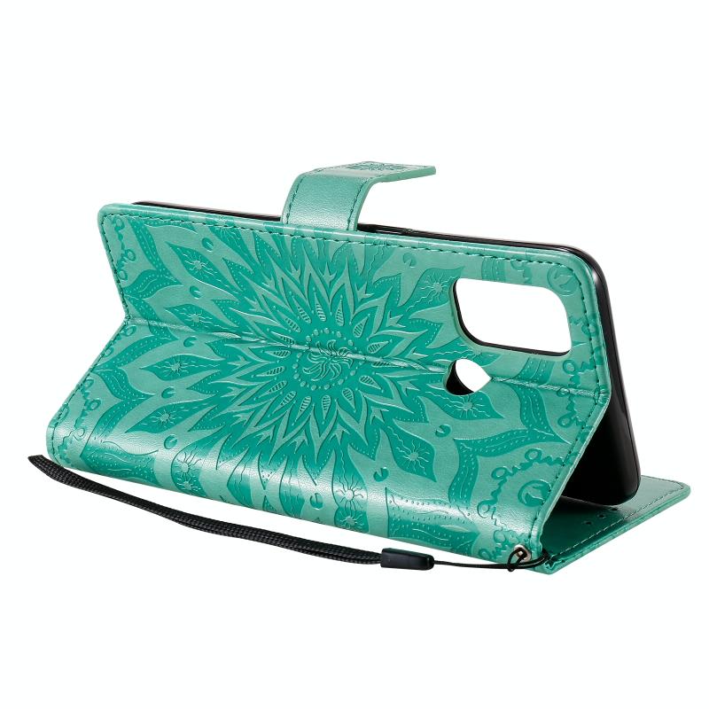 Θήκη δέρματος οριζόντιας αναδίπλωσης με ανάγλυφο σχέδιο ήλιου για OPPO A53(2020) / A33(2020) / A53s / A32 με υποδοχή κάρτας & βάση & πορτοφόλι & κορδόνι (Καφέ)
