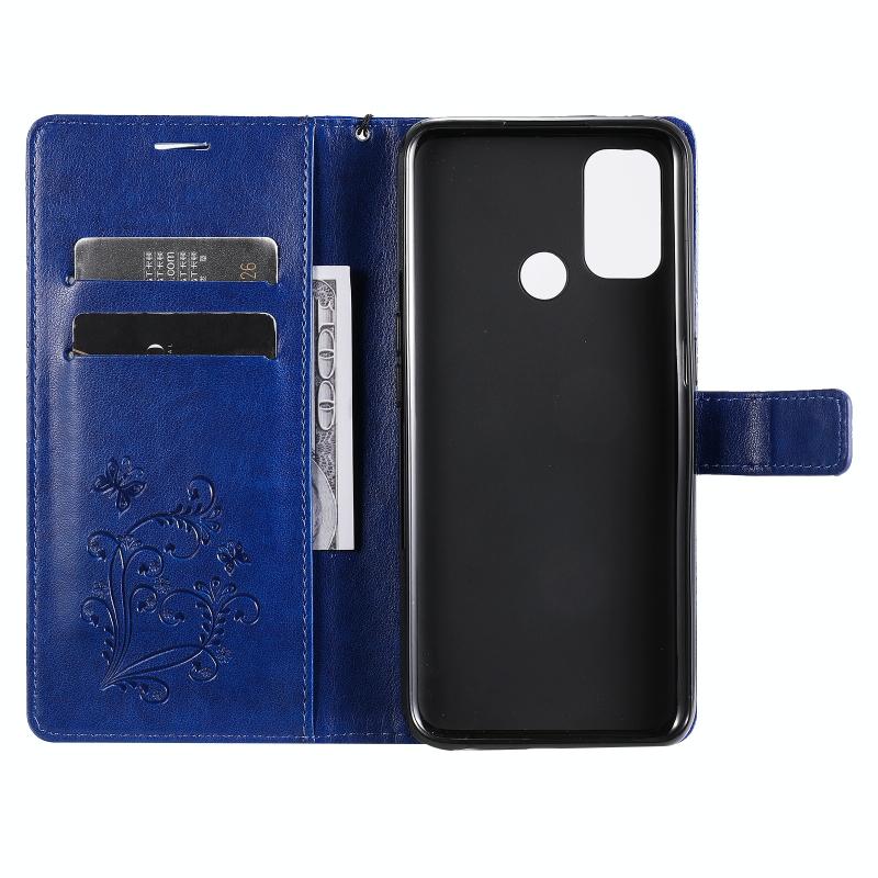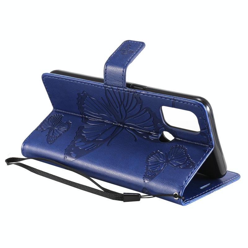 Θήκη βιβρίου από δέρμα με οριζόντιο άνοιγμα, με ανάγλυφο σχέδιο 3D πεταλούδων, για OPPO A53 (2020) / A53s / A33 (2020) / A32, με βάση στήριξης & θήκη για κάρτες & πορτοφόλι (Χρυσό ροζ)