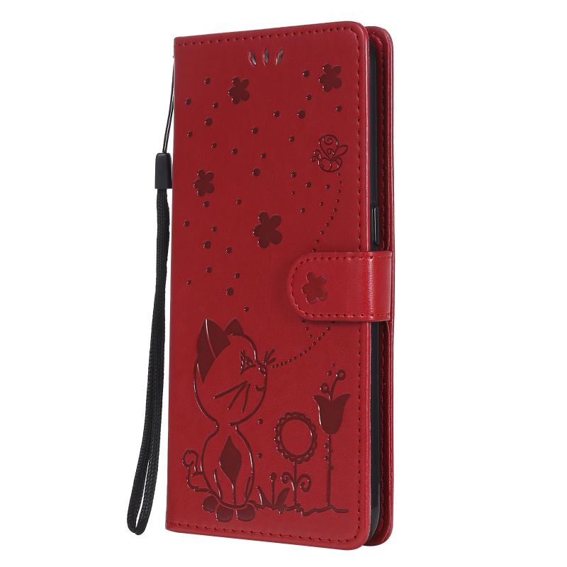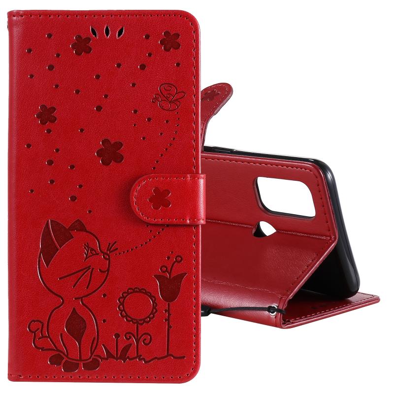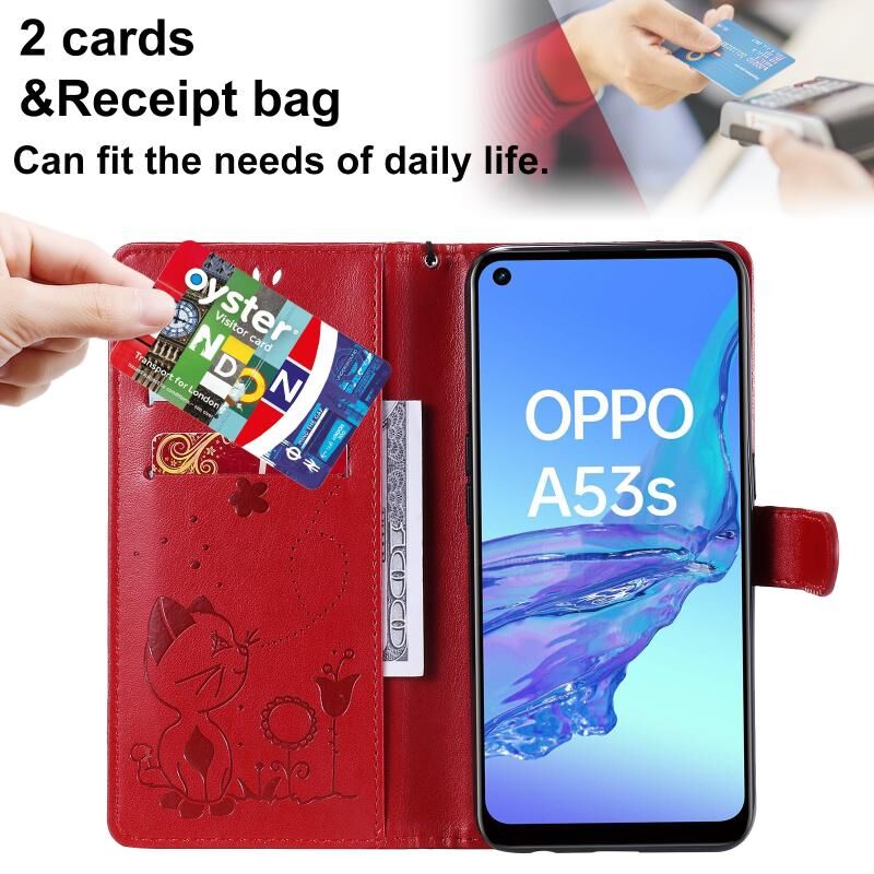 Θήκη δέρματος οριζόντιας αναδίπλωσης με ανάγλυφο σχέδιο Cat Bee, αντικραδασμική για OPPO A53 (2020) / A53s, με βάση στήριξης & υποδοχές καρτών & πορτοφόλι (Μωβ)