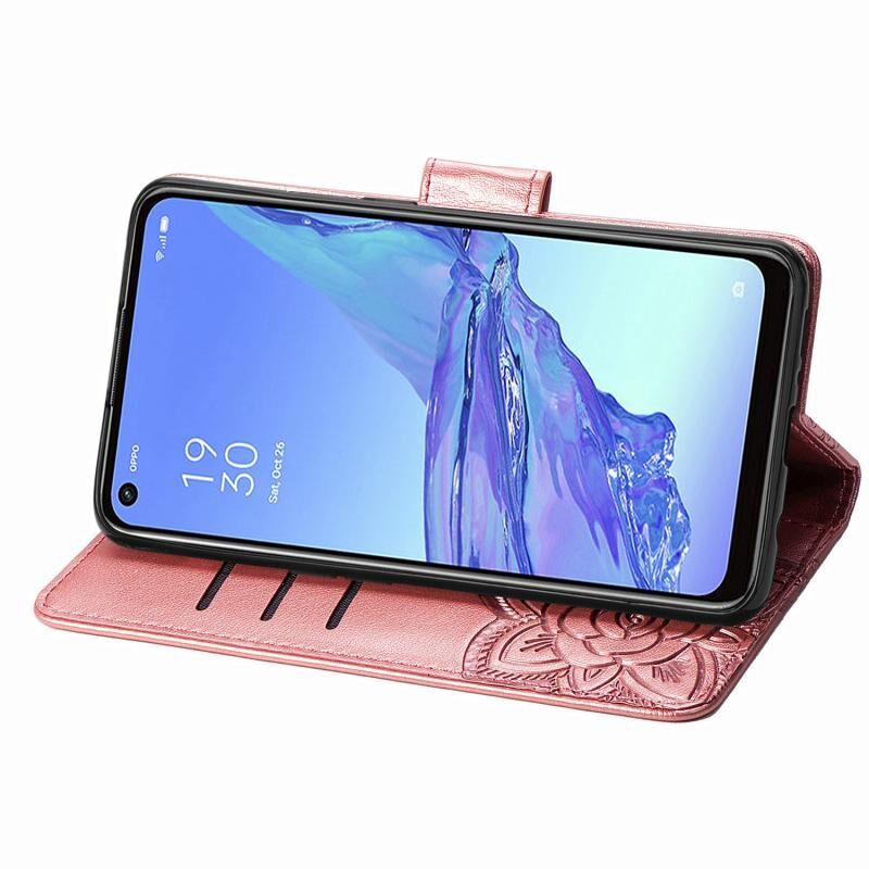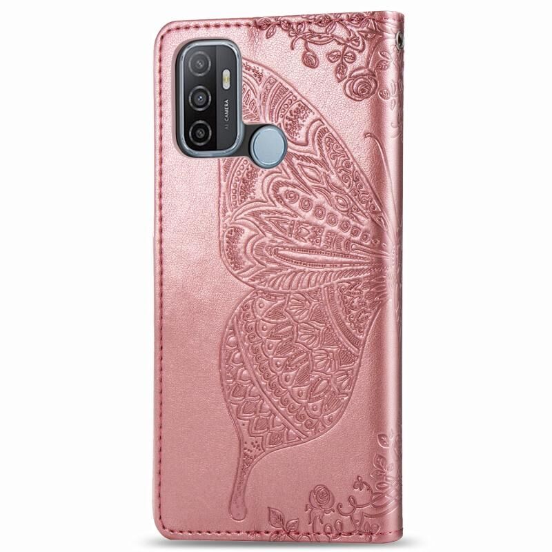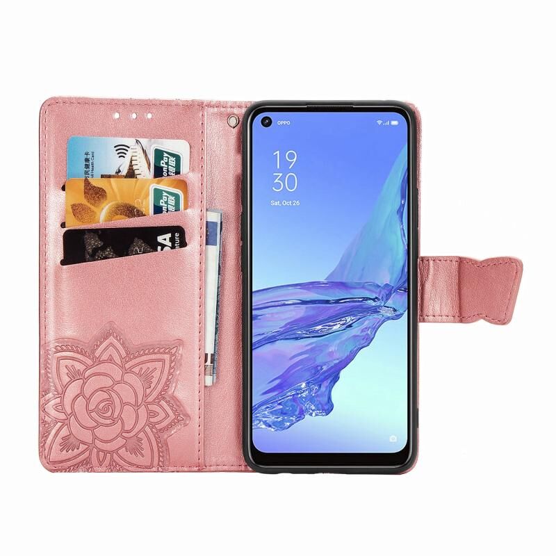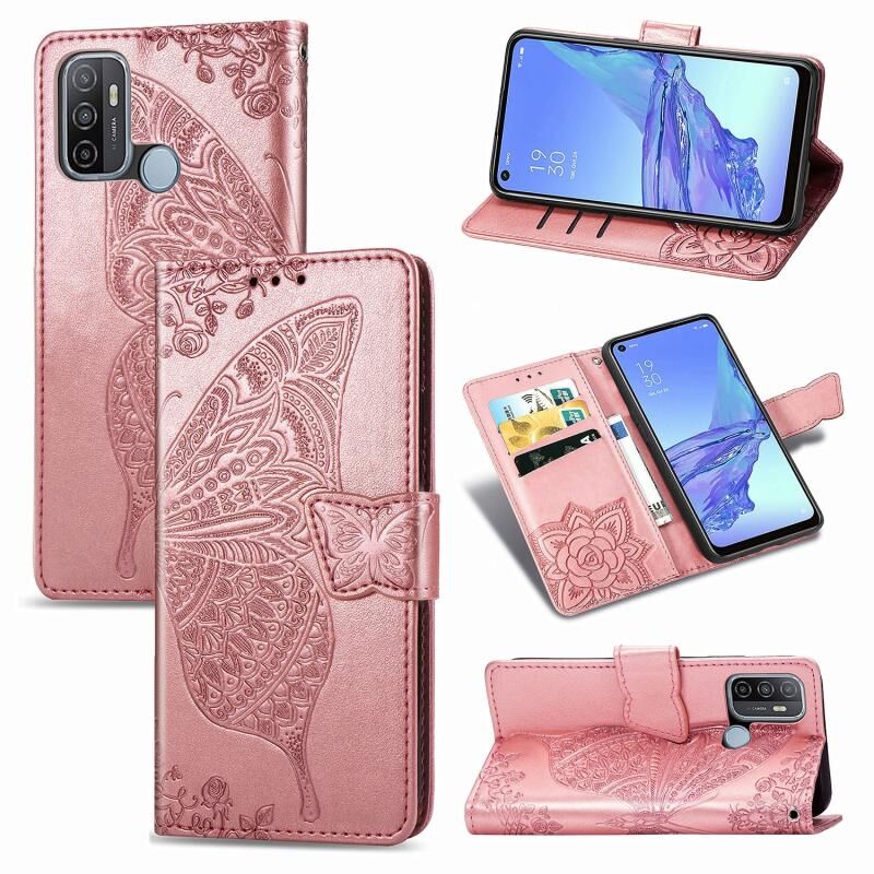 Για το OPPO A53 2020 Θήκη Δέρματος Οριζόντιας Αναδίπλωσης με ανάγλυφο σχέδιο Πεταλούδας και Λουλουδιών, με Στήριγμα / Θήκη Καρτών / Πορτοφόλι / Λουρί (Μαύρο)