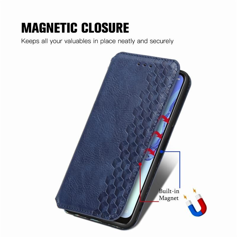 Για Oppo A53 2020 Cubic Grid Pressed Horizontal Flip Μαγνητική PU δερμάτινη θήκη με θήκη & υποδοχές καρτών & πορτοφόλι (μπλε)