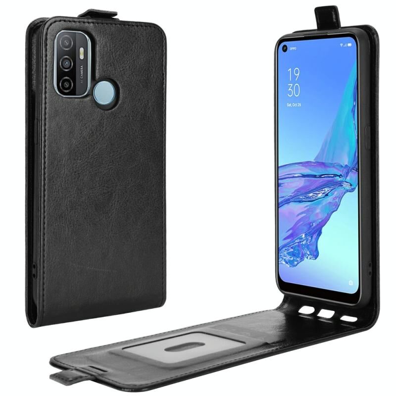 Για OPPO A53 2020/OPPO A32 2020 R64 Texture Single Vertical Flip δέρμα προστατευτική θήκη με υποδοχές για κάρτες & πλαίσιο φωτογραφιών (Μαύρο)