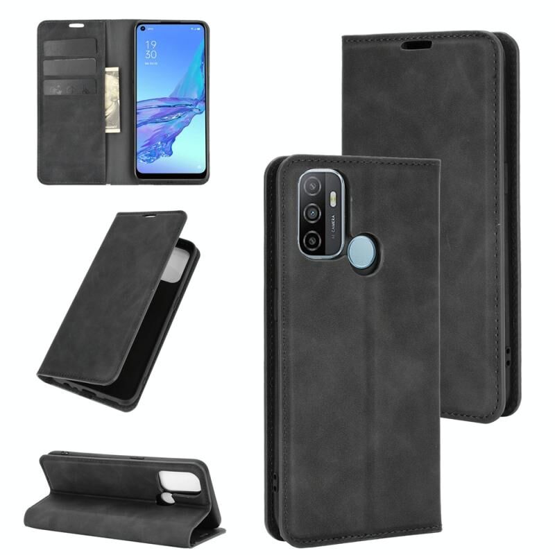 Για OPPO A53 2020/OPPO A32 2020 Retro-skin Business Μαγνητική δερμάτινη θήκη αναρρόφησης με θήκη & υποδοχές καρτών & πορτοφόλι (Μαύρο)