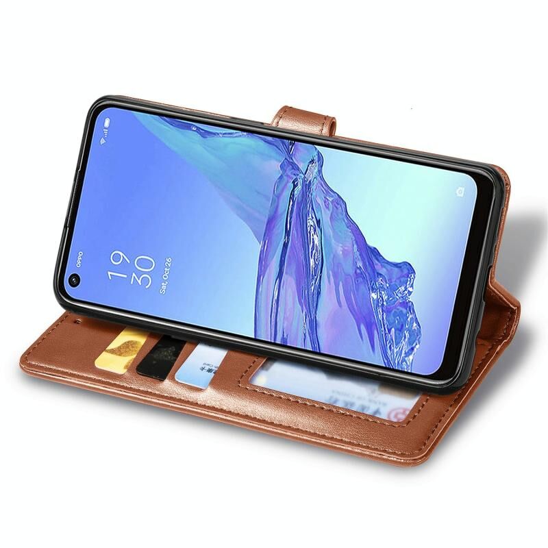 Για Oppo A53 2020 Ρετρό στερεό χρώμα δερμάτινη θήκη τηλεφώνου πόρπη με κορδόνι & πλαίσιο φωτογραφιών & υποδοχή κάρτας & πορτοφόλι & λειτουργία Stand (Καφέ)