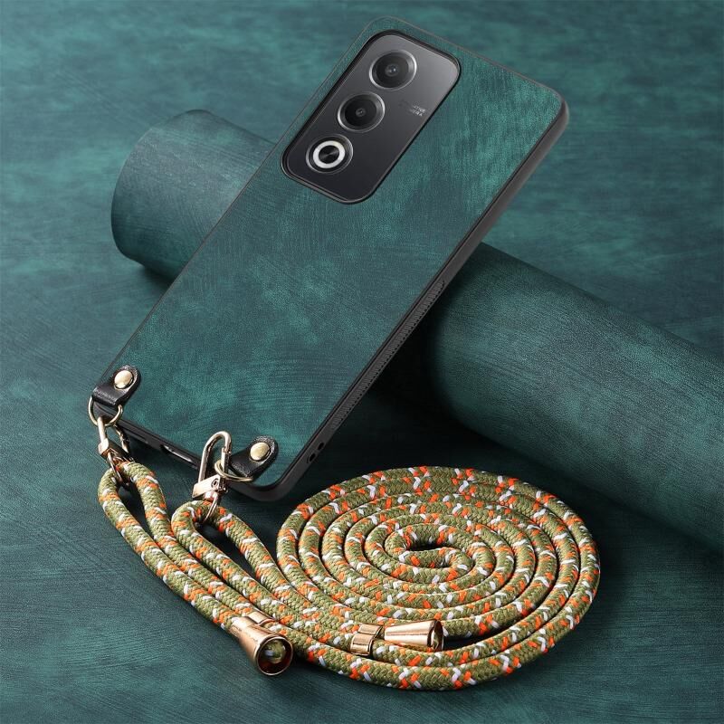 For OPPO A53 2020 Vintage Leather PC Back Cover Phone Case with Crossbody Strap(Green)