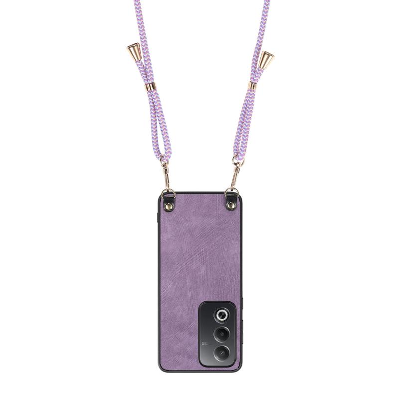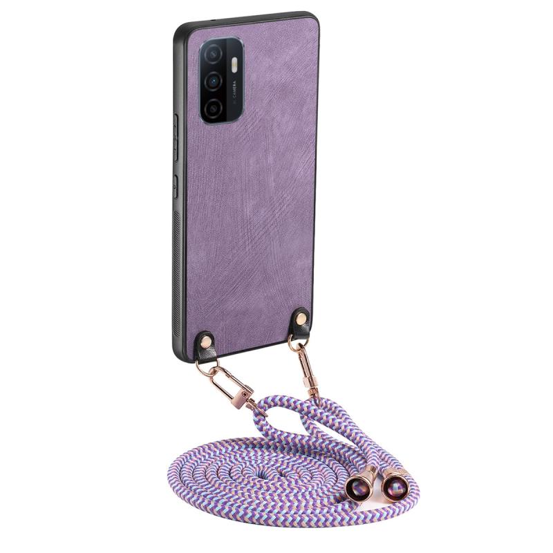 For OPPO A53 2020 Vintage Leather PC Back Cover Phone Case with Crossbody Strap(Purple)