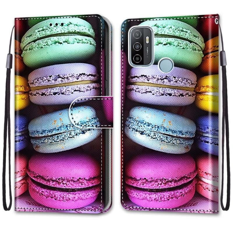 Θήκη για OPPO A53 4G (2020) / A53s / A32 / A33 (2020) με σχέδια, ανάγλυφη υφή, οριζόντιο άνοιγμα, από δερματίνη PU με βάση για στήριξη, θήκες για κάρτες, πορτοφόλι & λουρί (Πολύχρωμα γλυκά)