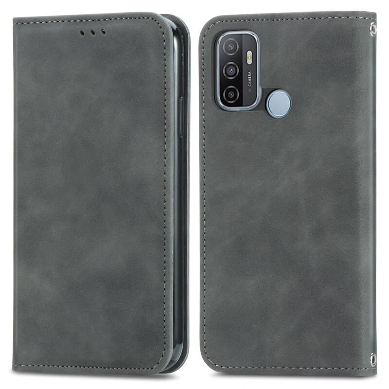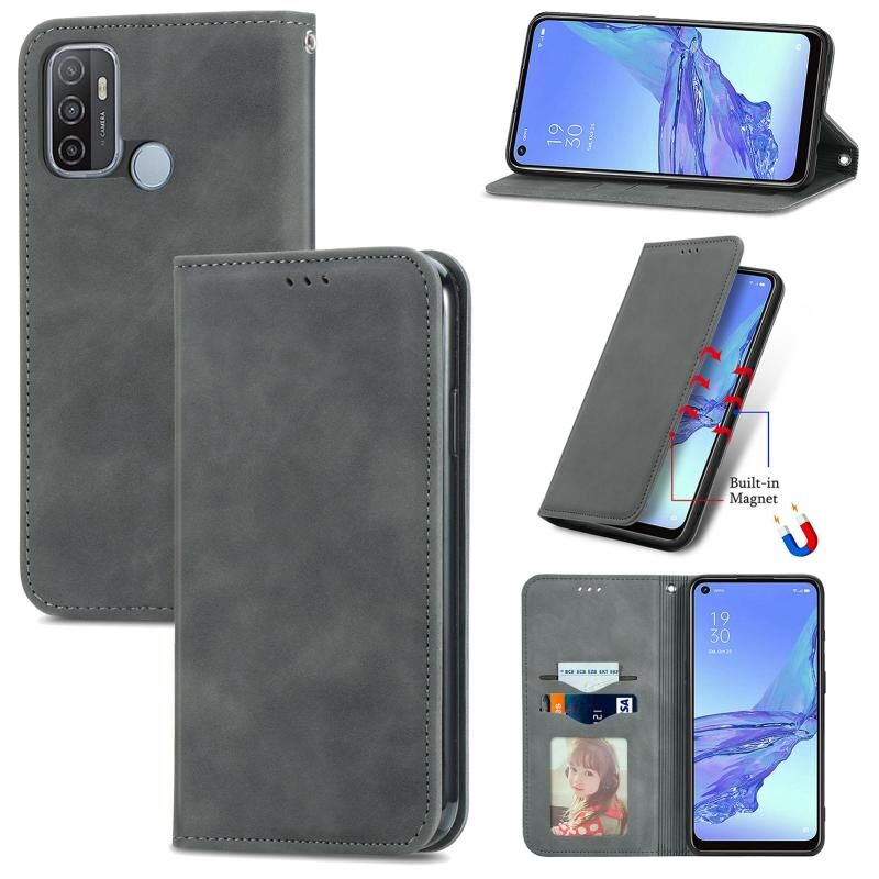 Για OPPO A53 5G Retro Skin Feel μαγνητική οριζόντια Flip δέρμα τηλέφωνο υπόθεση (γκρι)