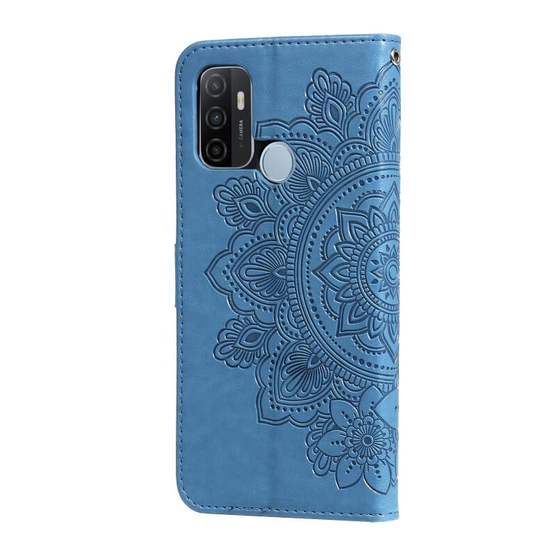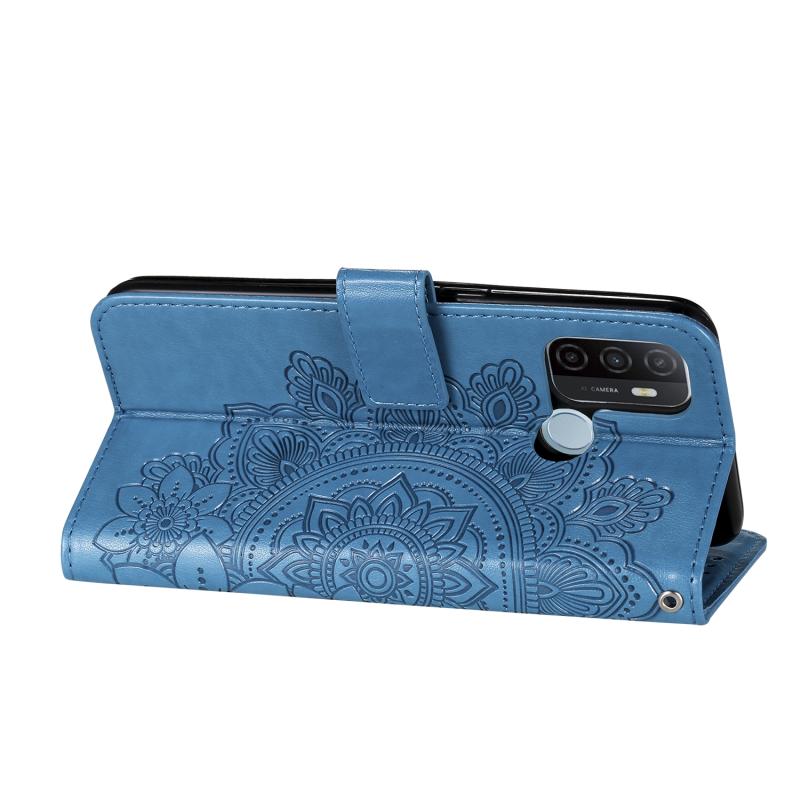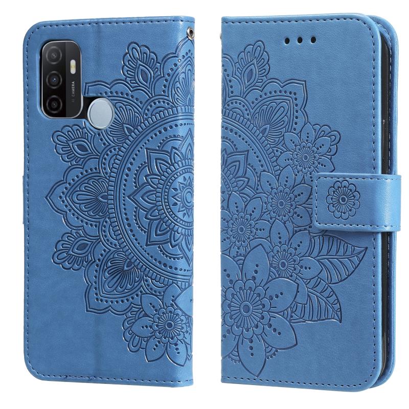 For OPPO A53 / A33 / A32 7-petal Flowers Embossing Pattern Horizontal Flip PU Leather Case with Holder & Card Slots & Wallet & Photo Frame(Blue)