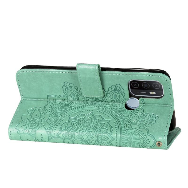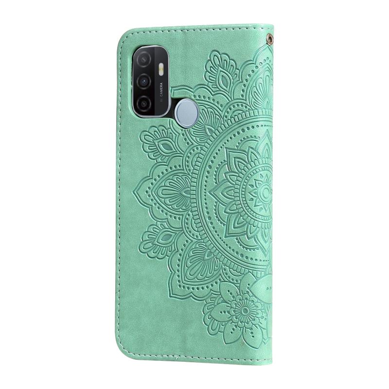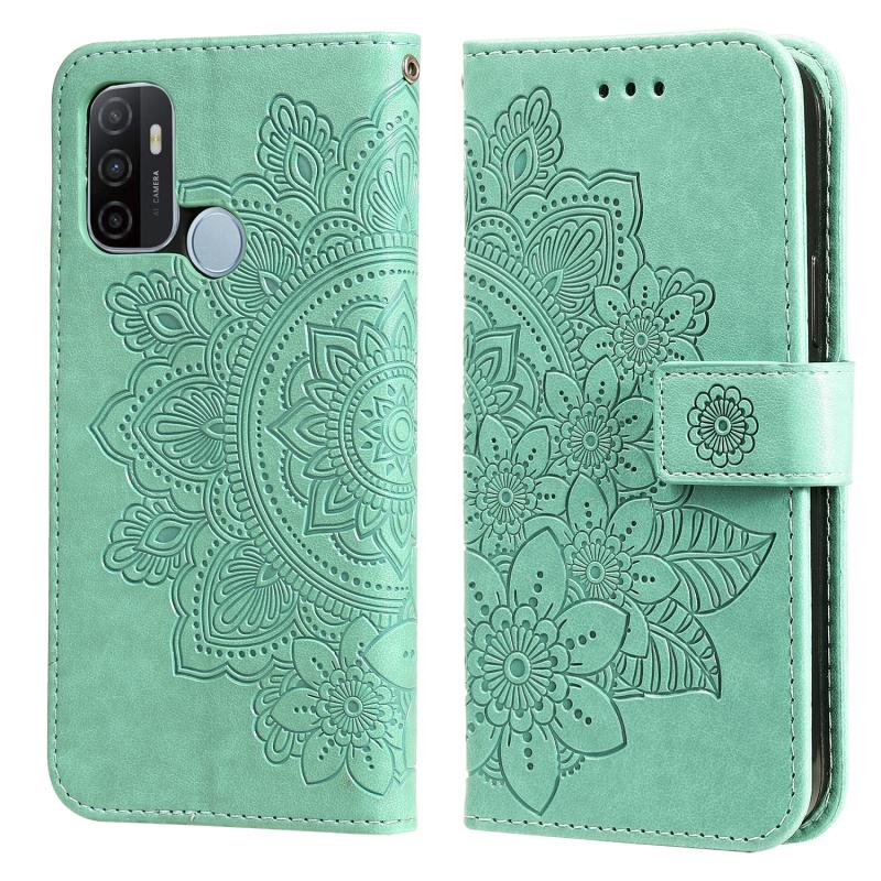 For OPPO A53 / A33 / A32 7-petal Flowers Embossing Pattern Horizontal Flip PU Leather Case with Holder & Card Slots & Wallet & Photo Frame(Green)