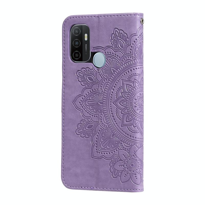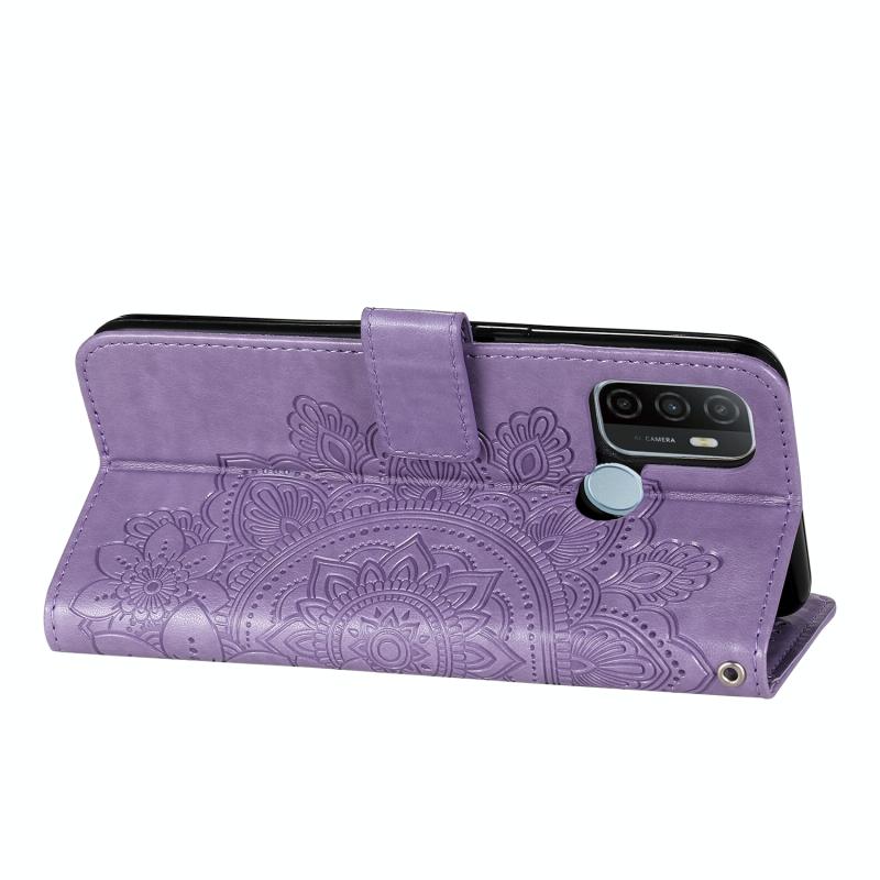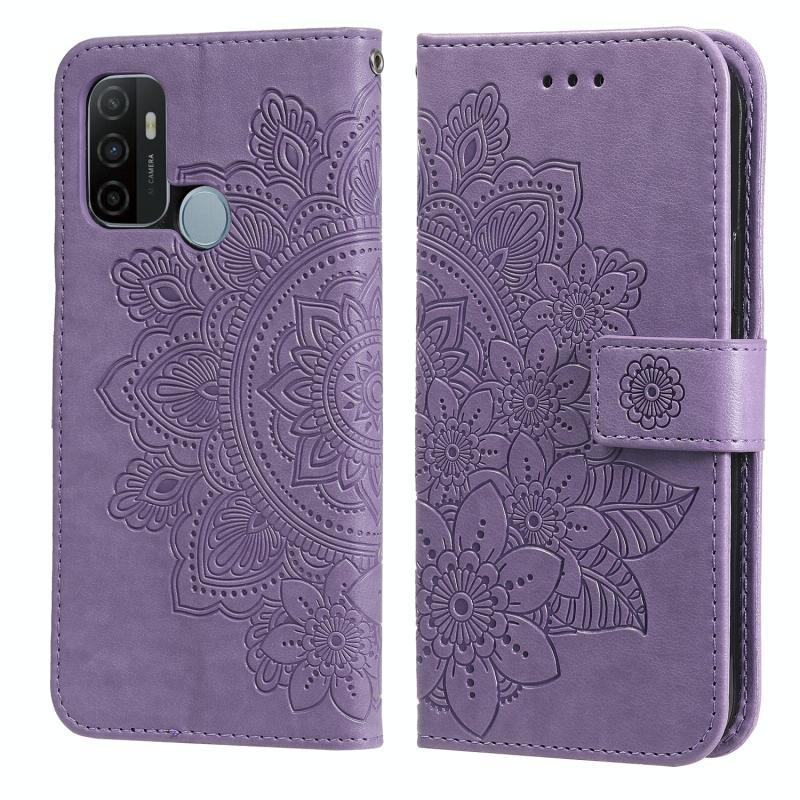 For OPPO A53 / A33 / A32 7-petal Flowers Embossing Pattern Horizontal Flip PU Leather Case with Holder & Card Slots & Wallet & Photo Frame(Light Purple)