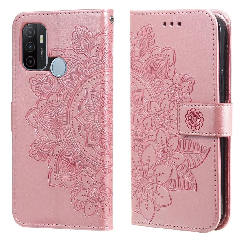 Για OPPO A53 / A33 / A32 Θήκη οριζόντιας αναδίπλωσης από δερματίνη PU με ανάγλυφο σχέδιο 7 πέταλων, με βάση στήριξης & υποδοχές καρτών & πορτοφόλι & κορνίζα φωτογραφιών (Χρυσό Ρόδι)