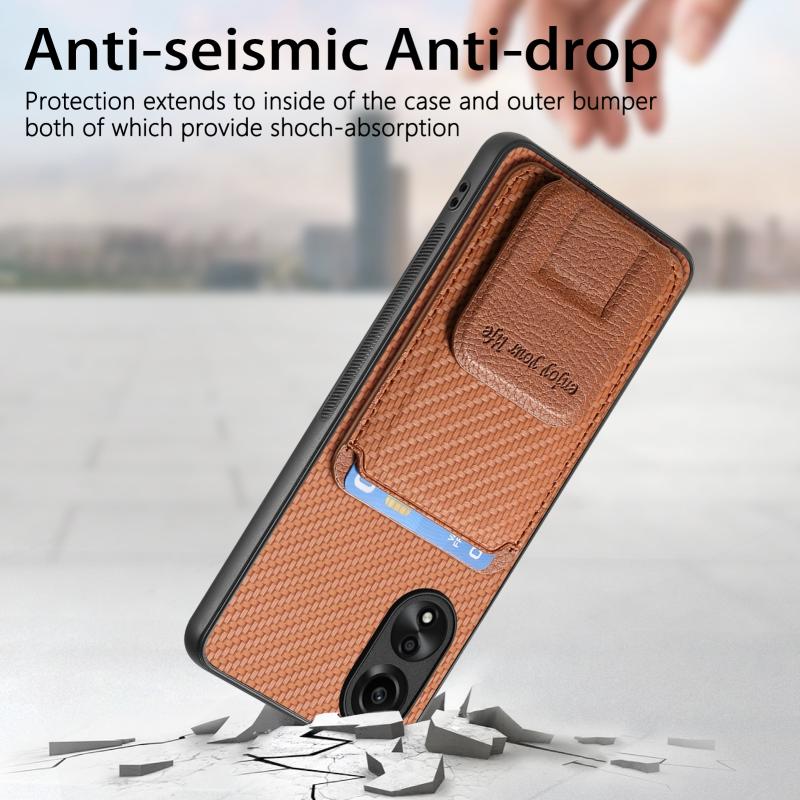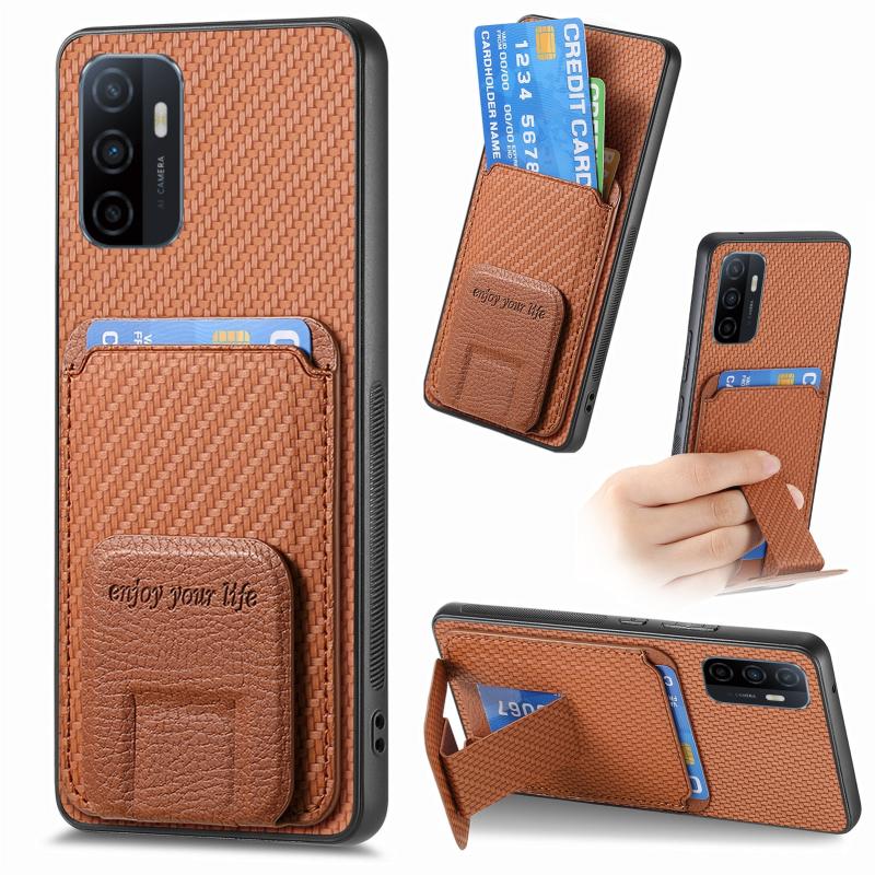 Για OPPO A53 / A53S Θήκη με Κάρτες & Στήριξη, Carbon Fiber (Καφέ)