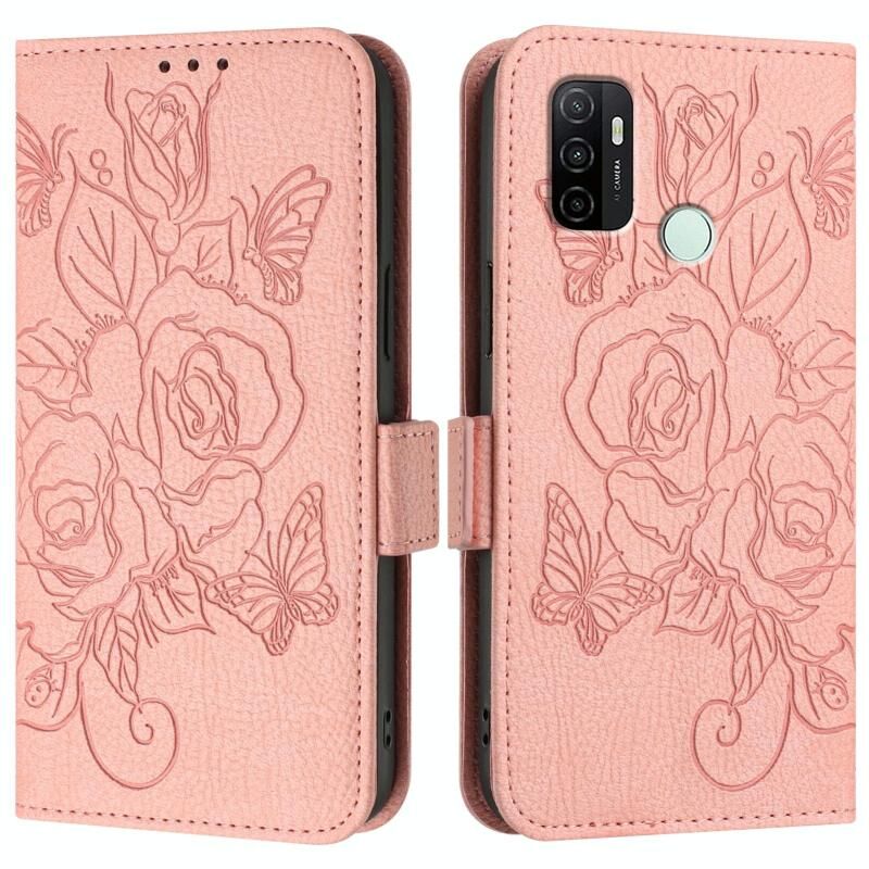 Για OPPO A53s 4G / A33 2020 4G ανάγλυφο Rose RFID Anti-theft Δερμάτινη θήκη τηλεφώνου (ρόζ)
