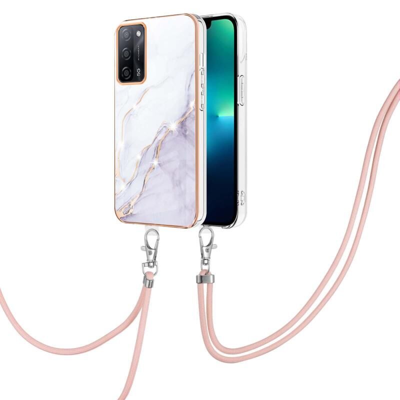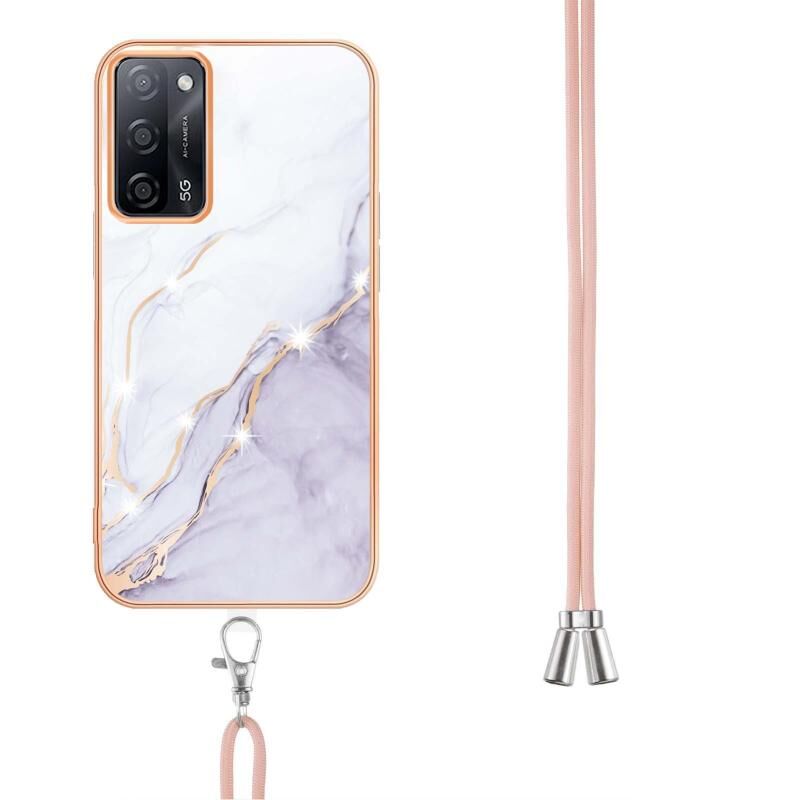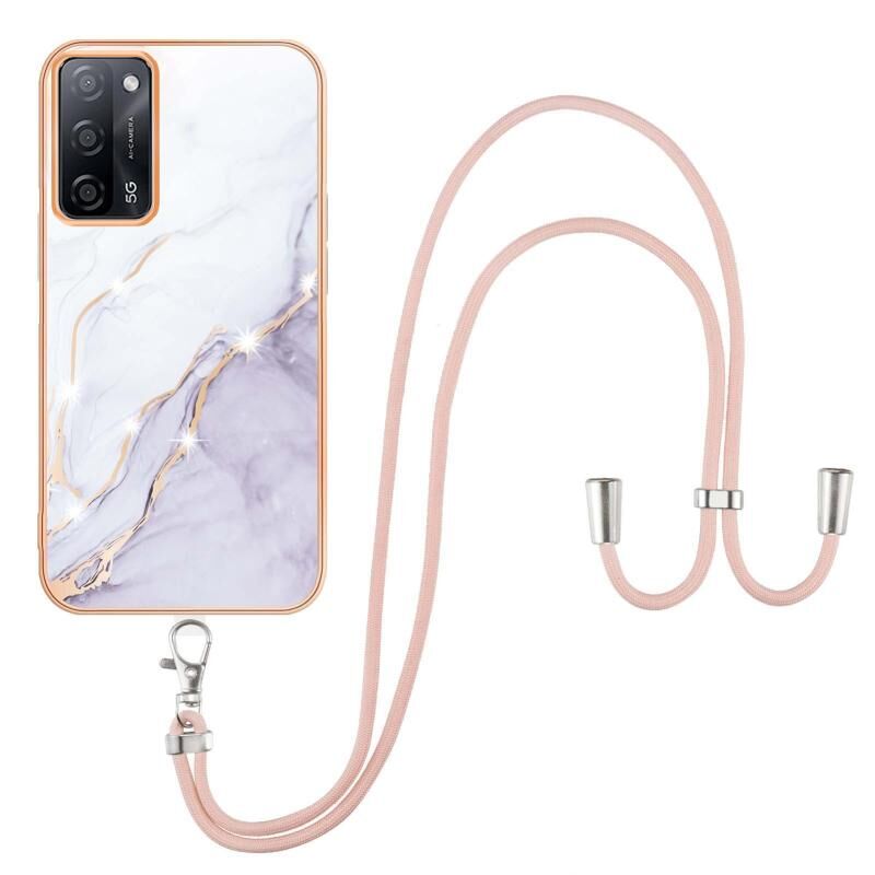 Θήκη κινητού τηλεφώνου TPU με επιμετάλλωση, σχέδιο μάρμαρου IMD με κορδόνι για OPPO A53s 5G / A55 5G / A54 4G / A16 / A54s (Μωβ 001)