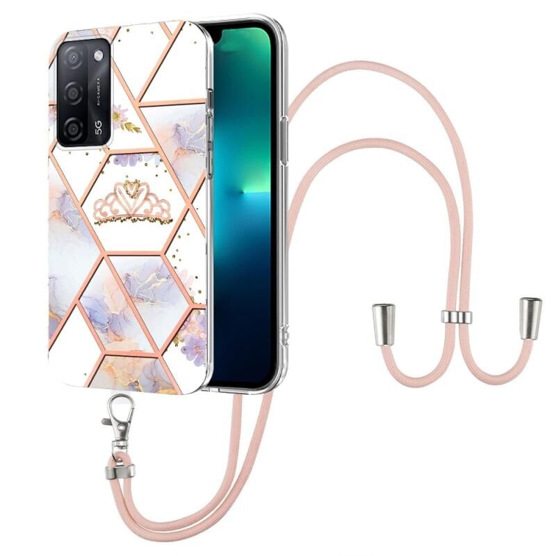 Θήκη τηλεφώνου TPU με σχέδιο μαρμάρου και λουλουδιών patchwork για OPPO A53s 5G / A55 5G / A54 4G / A16 με κορδόνι (Imperial Crown)