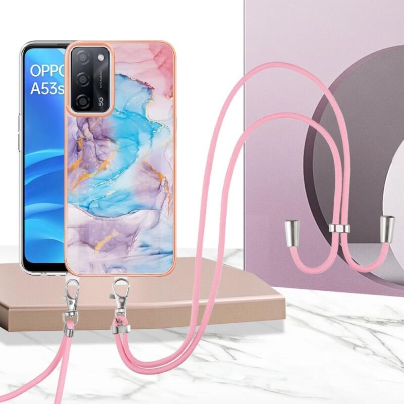 Θήκη τηλεφώνου TPU IMD με ηλεκτρολυτική επικάλυψη για OPPO A53s 5G / A55 5G με κορδόνι (Ροζ Λέπια)