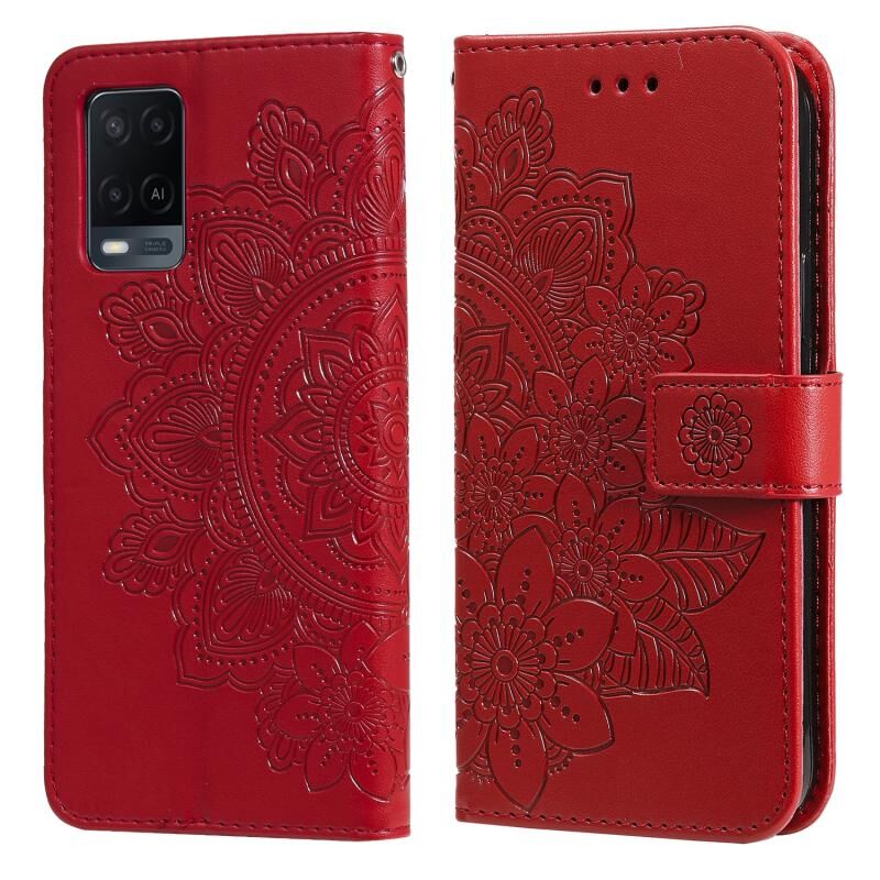 Για OPPO A54 4G 7-πέταλο λουλούδια ανάγλυφο μοτίβο οριζόντια Flip PU δέρμα υπόθεση με κάτοχο & υποδοχές για κάρτες & πορτοφόλι & πλαίσιο φωτογραφιών (Κόκκινο)