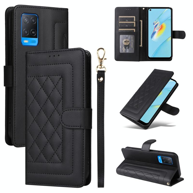 For OPPO A54 4G / A16 Diamond Lattice Leather Flip Phone Case(Black)